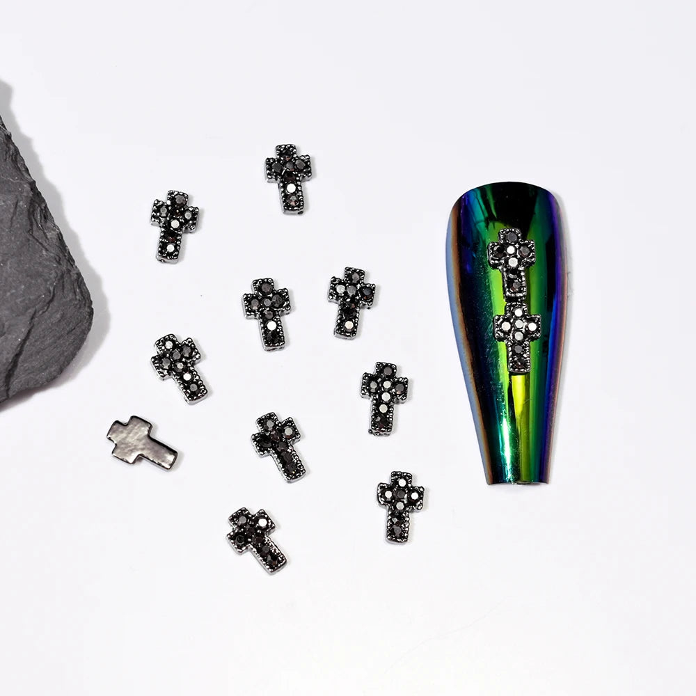 10pcs Bone Skeleton Halloween Nail Charms Scary Decoration Nail DIY 2023 Skull Cross Halloween Metal Nail Art Parts Gems