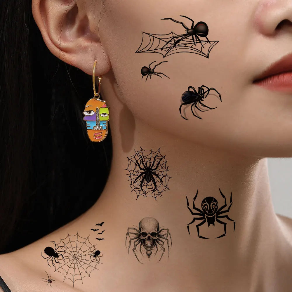 10Pcs Halloween Temporary Tattoo Stickers For Women Men Waterproof Spider Web Fake Tattoos For Face & Body Makeup