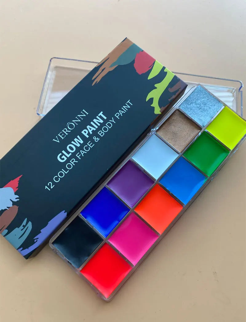 12 Cores UV Glow Paint Fluorescent Neon Oil Face Body Cosmetic Palette for Halloween Party Paint Fancy Dress Kid Cosplay Makeup