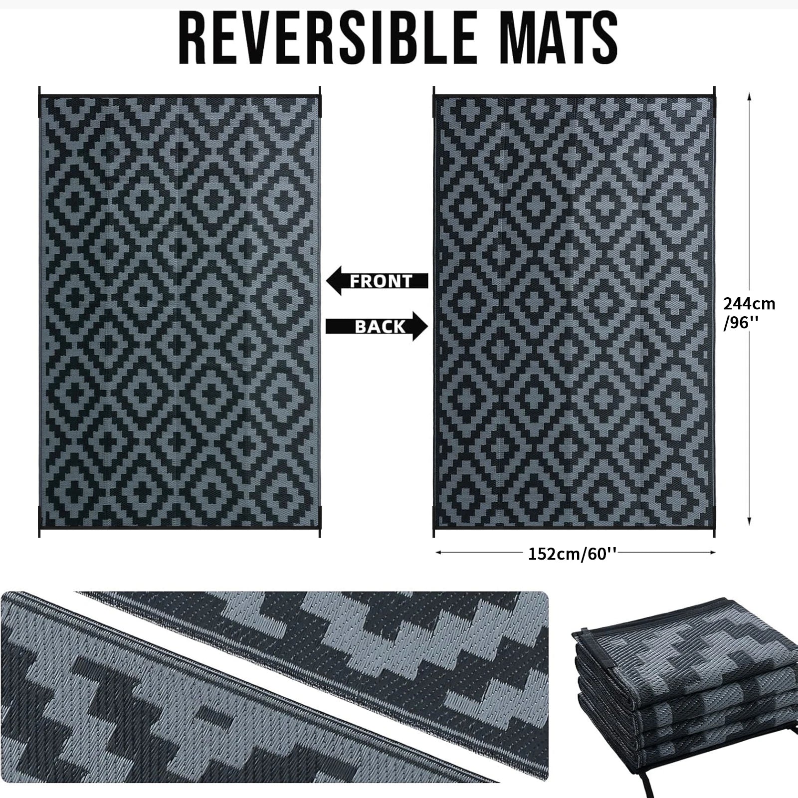 152x244CM Outdoor Rug for Patio Waterproof Anti-slip Plastic Straw Garden Mat Carpet UV Resistant Rugs for Camping Beach Picnic