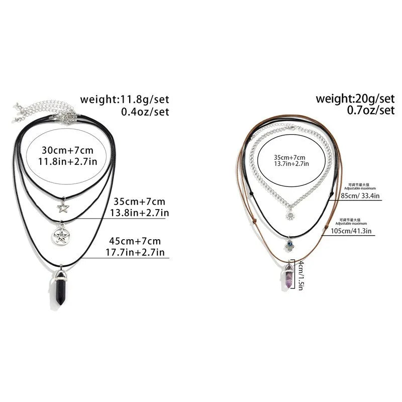 3Pcs/Set Goth Boho Pentagonal Star Crystal Leather Wax Thread Chain Necklace for Women Multilayer Choker Halloween Jewelry Gifts