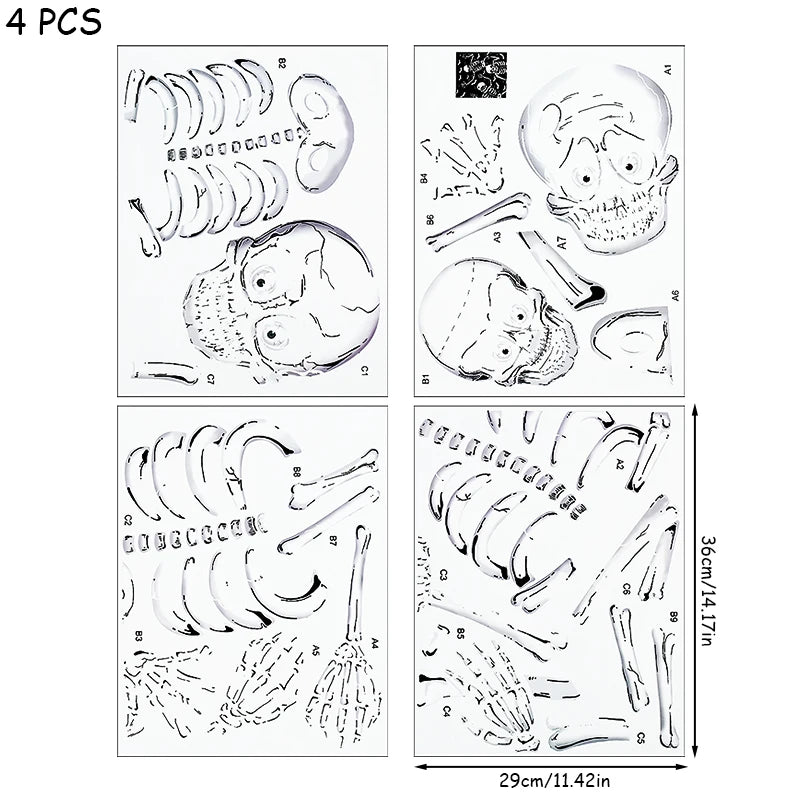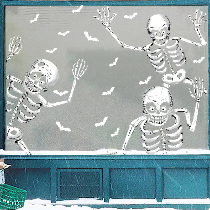 4Pcs Halloween Large Skeleton Wall Stickers Human Skull Bones Bat Window Stickers Halloween Party Scary Home Room Decal Decors