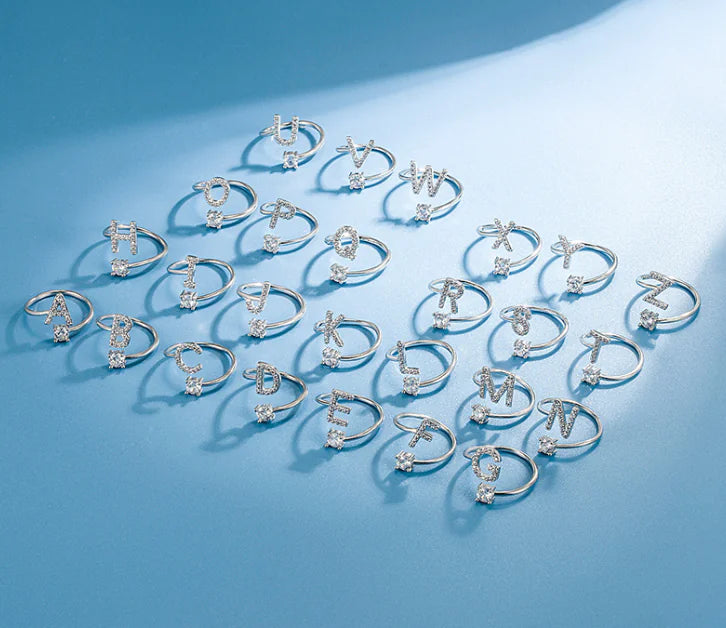 Elevate your style with our stunning Letters Ring, a perfect blend of chic sophistication and personal flair. This unisex adjustable ring allows you to express your individuality with its unique letter design, making it a must-have accessory for any fashion-forward wardrobe.