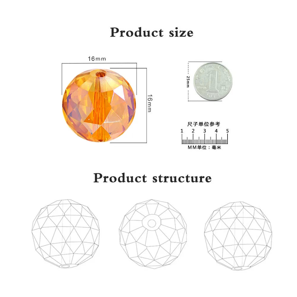 Crystal Beads Jewelry 16mm Glass Round Ball 10pcs/lot Faceted Loose Lampwork Beading For DIY Needlework Accessories