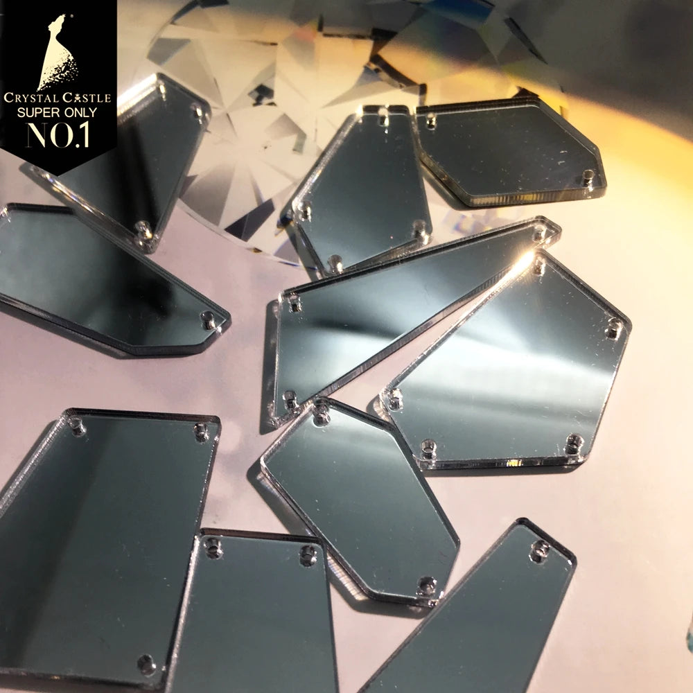 Crystal Castle Shiny Big Size Acrylic Holes Mirror Stones Sew On Strass Latin Dress Dance Wears Flat Rhinestones for Clothing