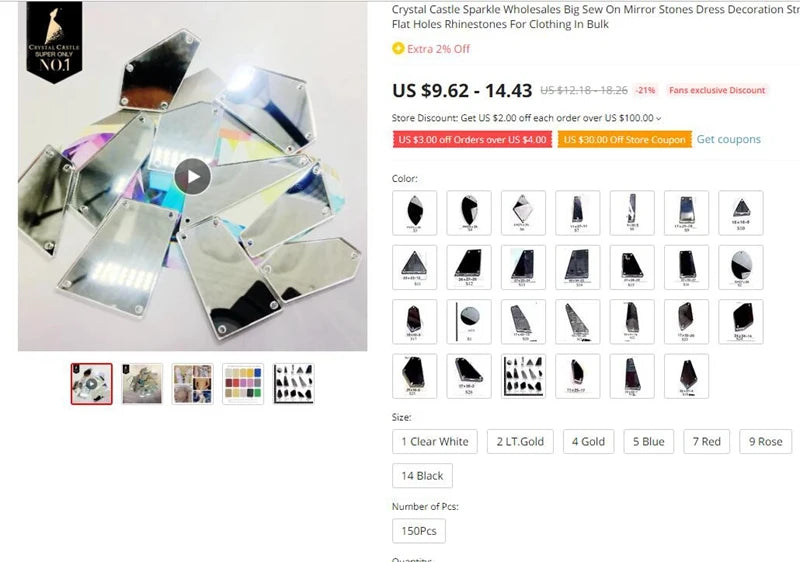 Model Number: Acrylic Sewing Stones Mirror Rhinestones