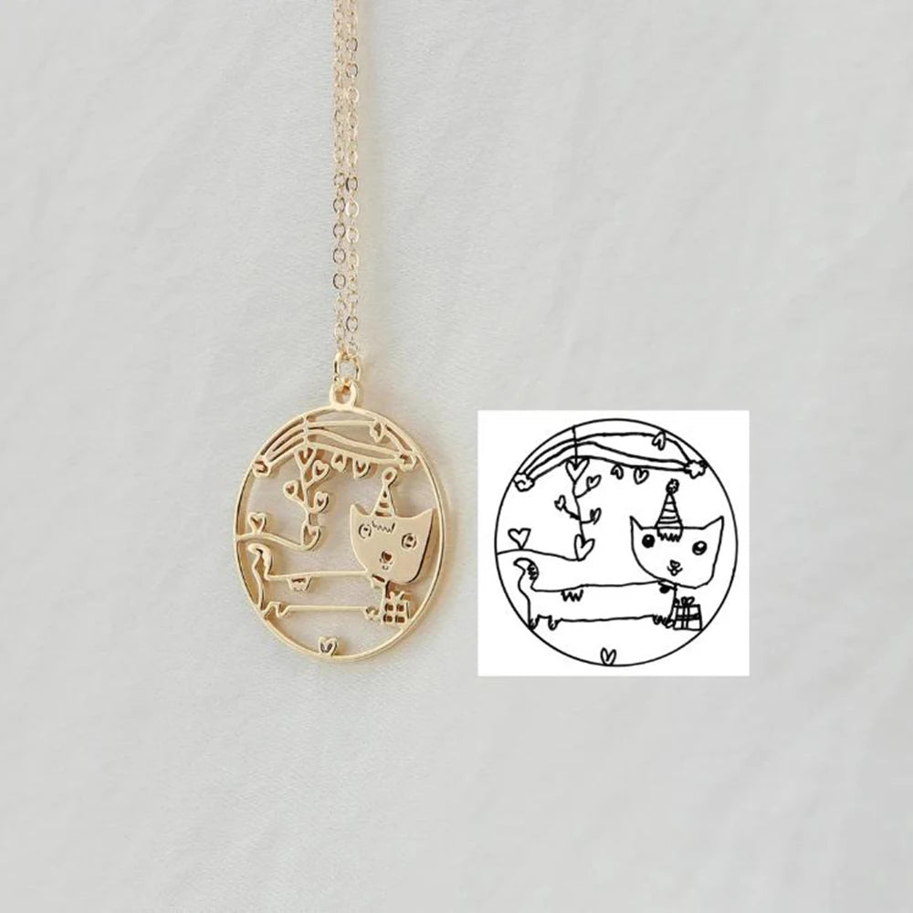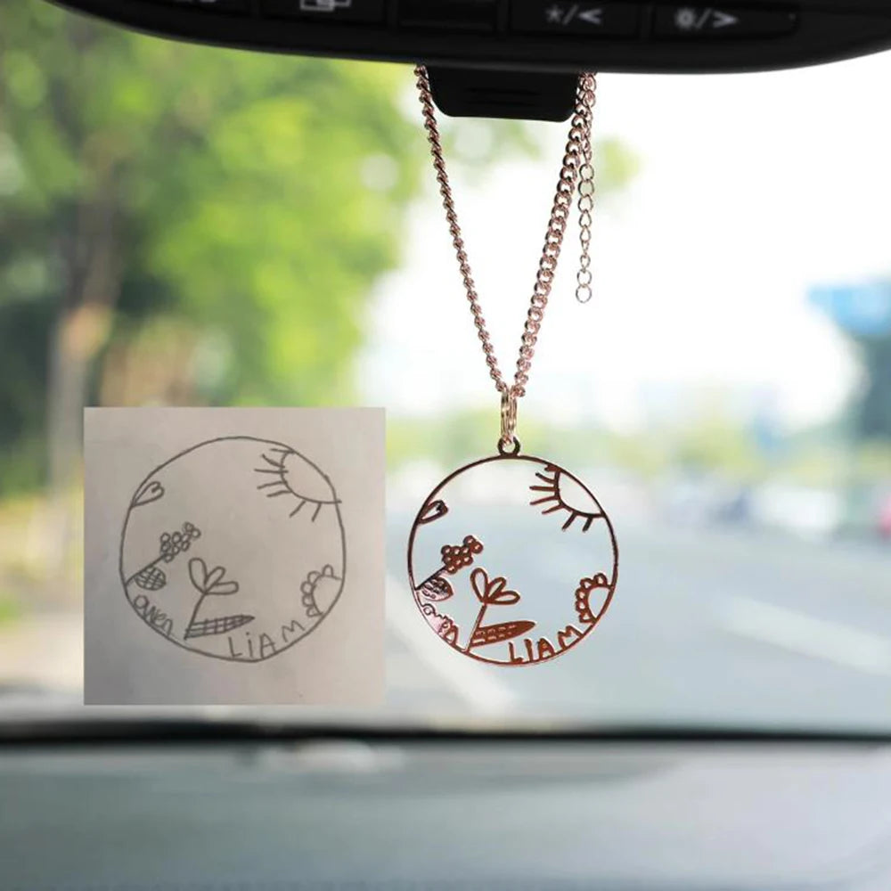 Customized actual children's painting keychain, Personalized photo art work keychain, Dad's memorial gift