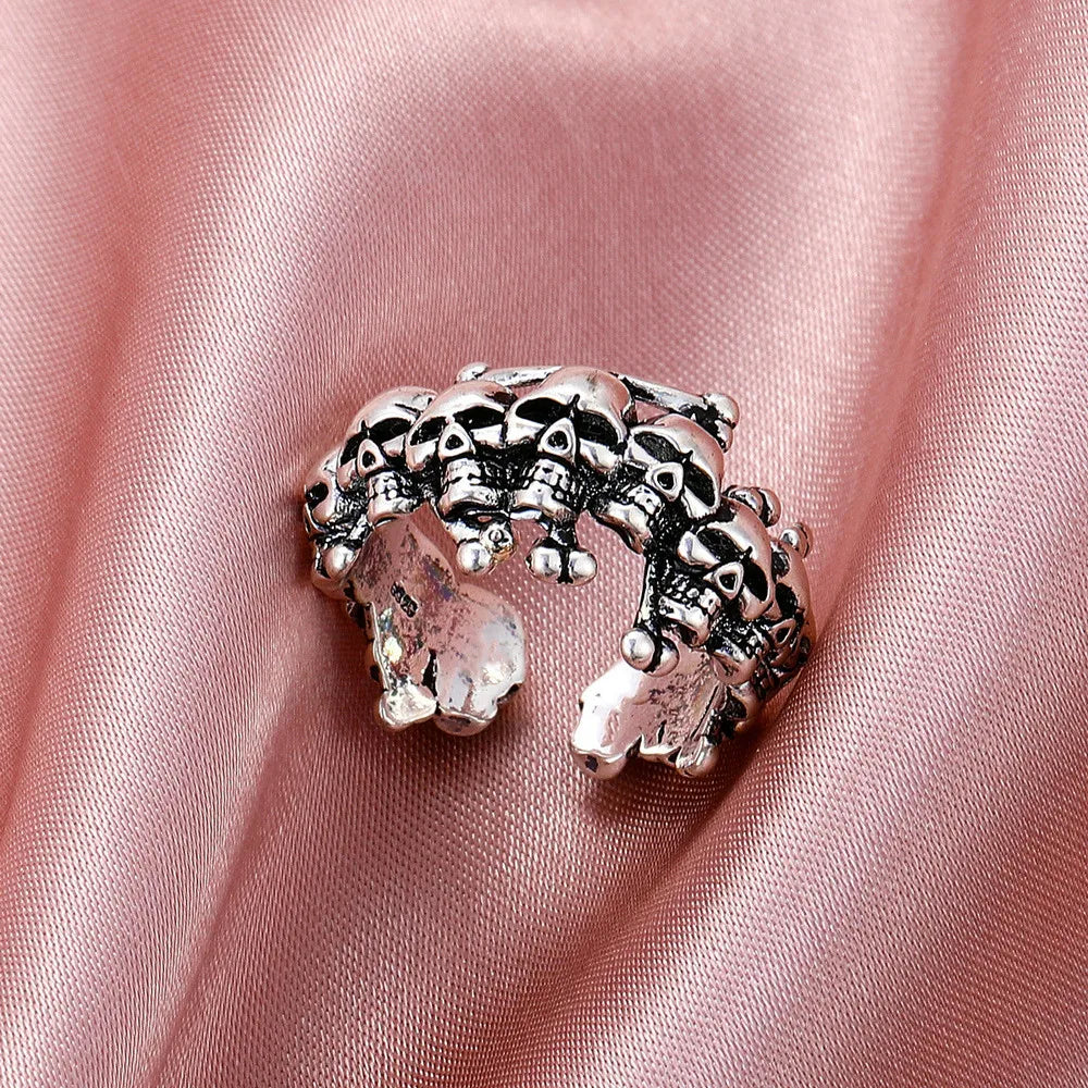 Dark Gothic Skull Skeleton Rings For Men Women Punk Goth Hiphop Rock Silver Color Adjustable Ring Fashion Jewelry Halloween