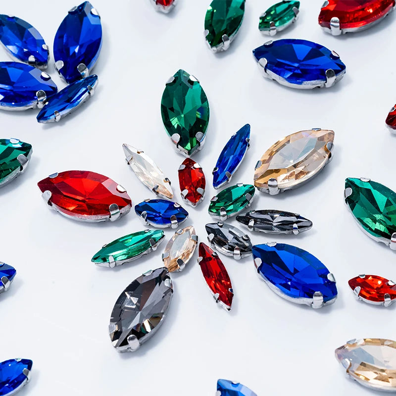 DUCrystal 50pcs/pack Mix Size Glass Crystal Sew On Rhinestones Flatback Rhinestones for Clothes Crafts Sewing Beads Decorations