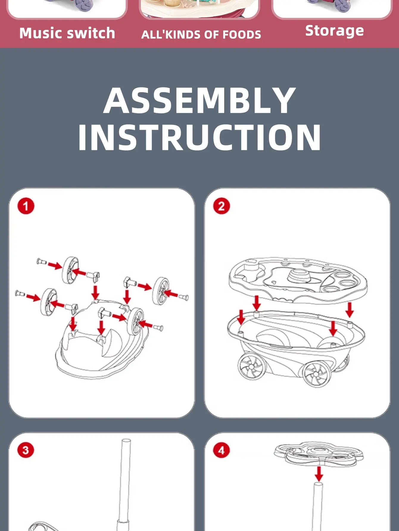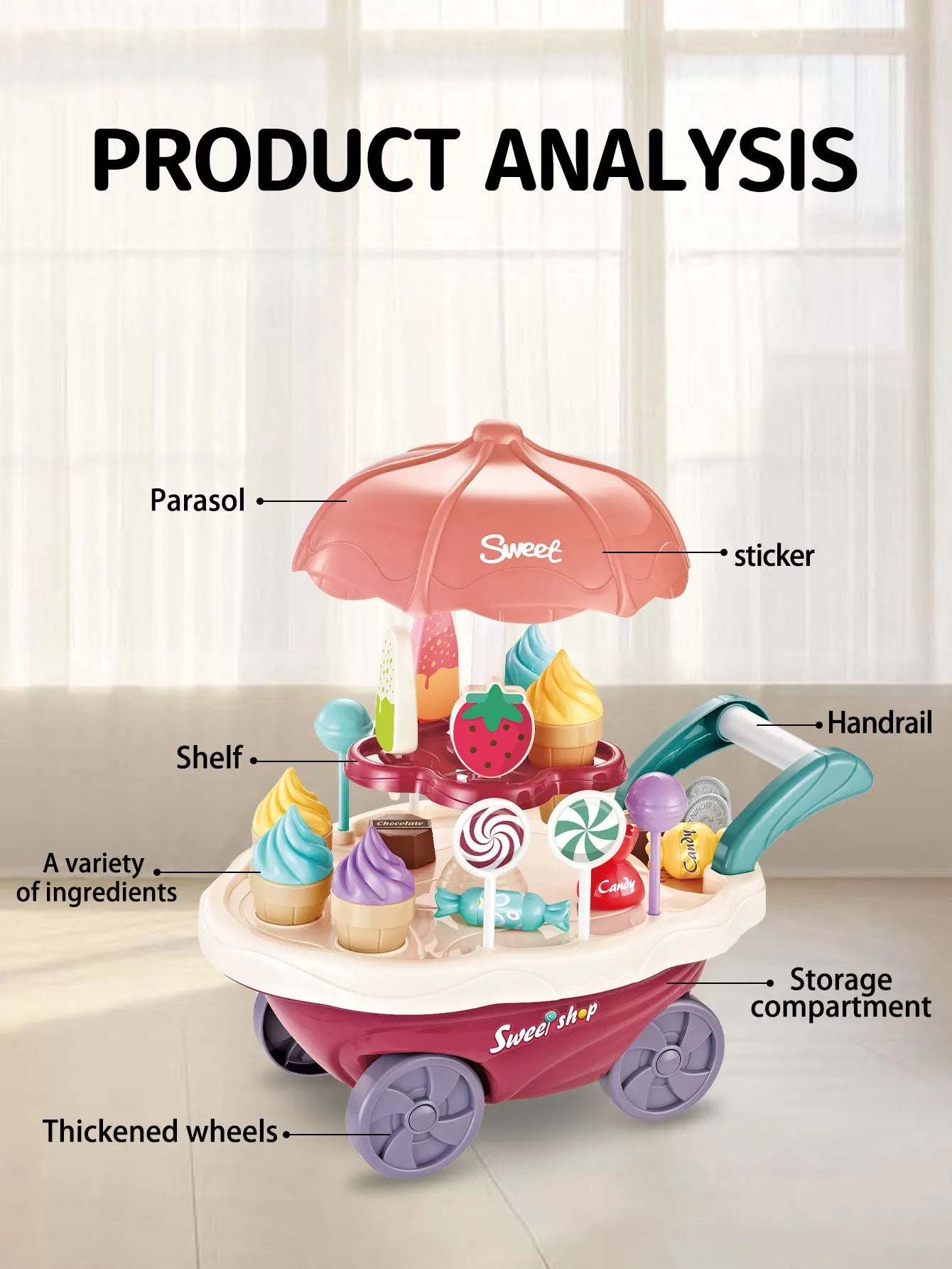 Family Play Children's Toys - Light and Music Mini Candy Dessert Cart with Storage Feature Toy Set