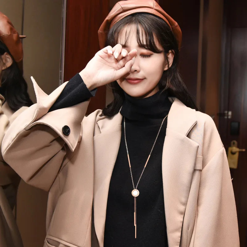 Fashion Geometric Disc Roman Digit Numbers Long Tassel Necklaces & Pendants Autumn Winter Sweater Chain Necklace Women Jewelry