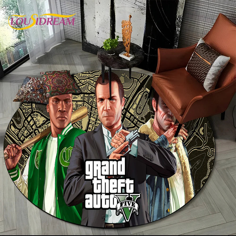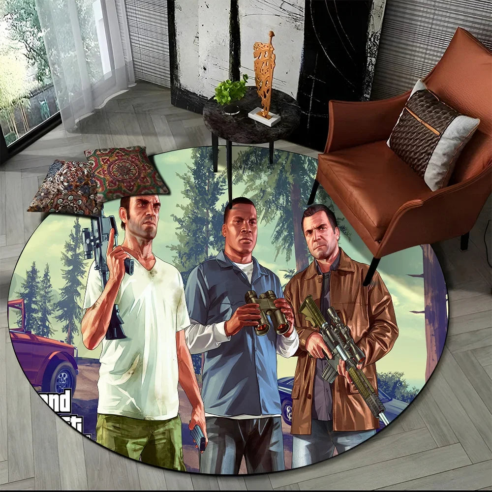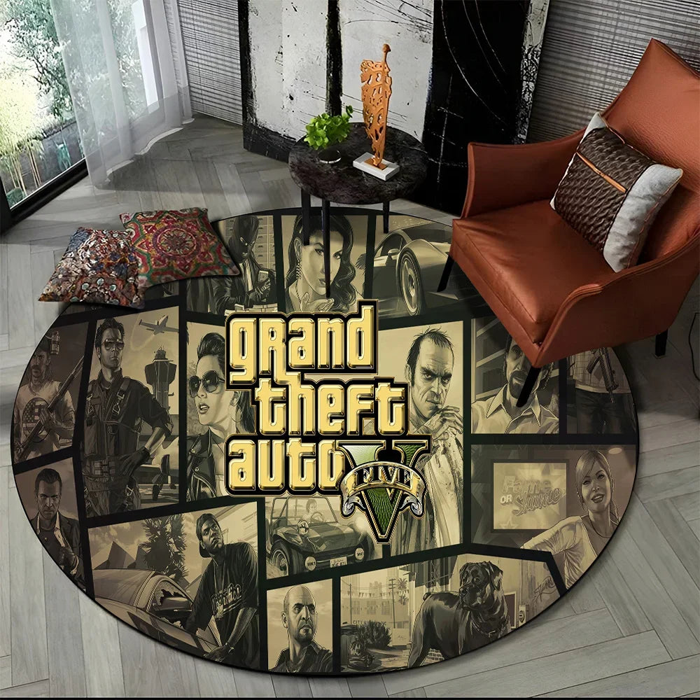 Grand Theft Auto Games GTA Gamer Round Carpet Rug for Living Room Bedroom Child Playroom Decor,Pet Area Rug Non-slip Floor Mat