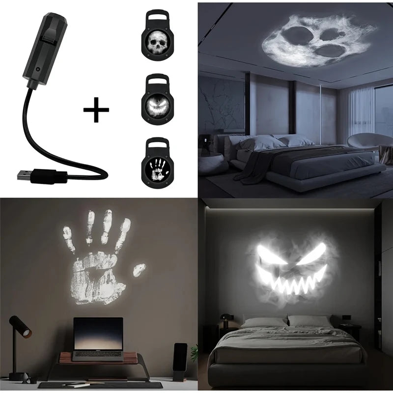 Halloween Decorations 360° Rotatable Skull Led Night Light With Interchangeable Projection Pattern Usb Powered Halloween Product