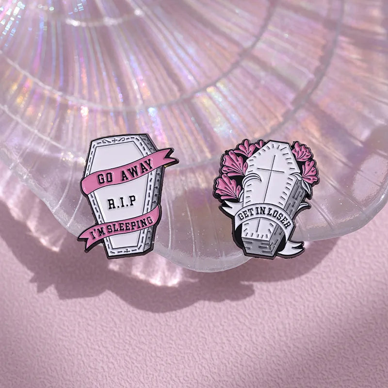 Halloween Horror Skull Enamel Pin Gothic Punk Grave Coffin Tomb Vampire Skeleton Brooches Lapel Badge Jewelry Gifts For Friends