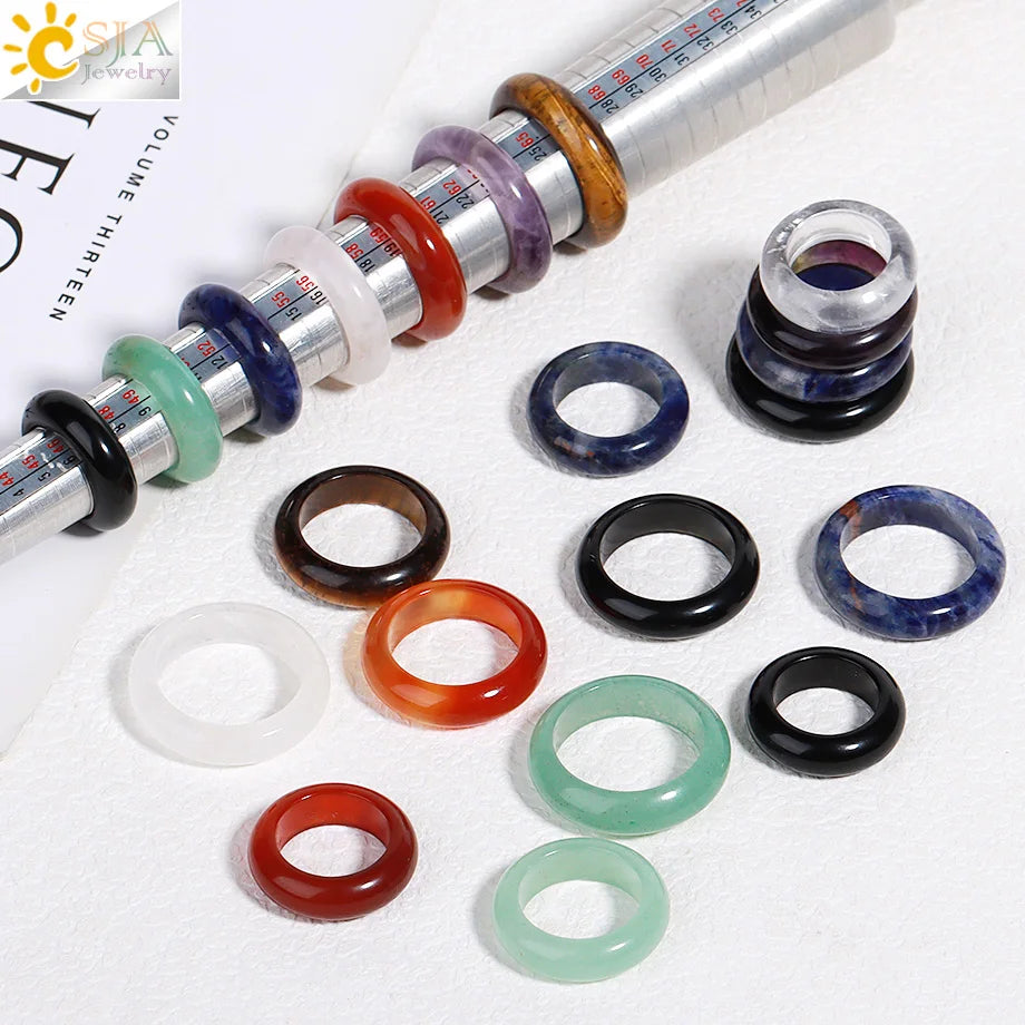 Healing Gem Stone Crystal Band Rings for Men Natural Pink Stone Quartz Red Agates Jaspers Dainty Finger Ring Women Jewelry H474
