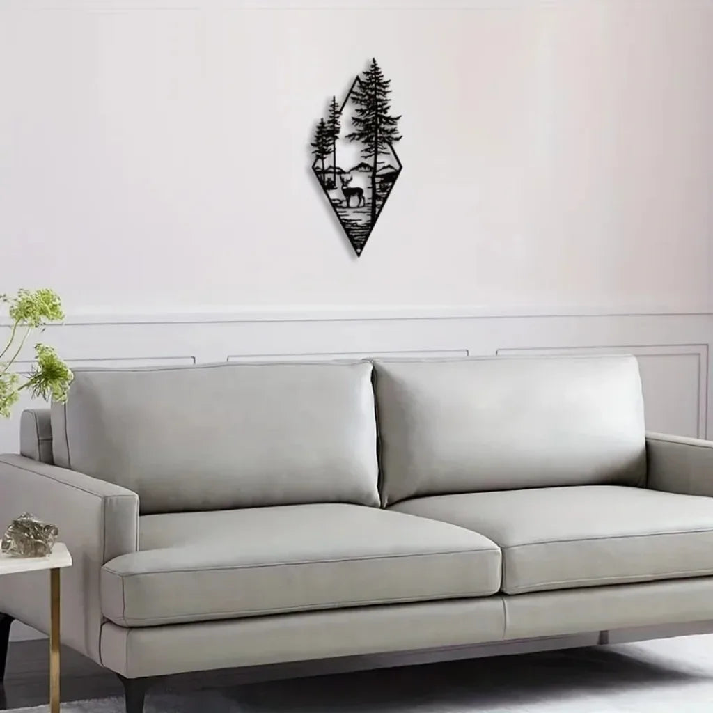 HelloYoung Landscape Wall Art, Deer & Scene Metal Wall Art Ornaments Home Decor, Metal Wall Art, Home Decor Art Wall Ornaments