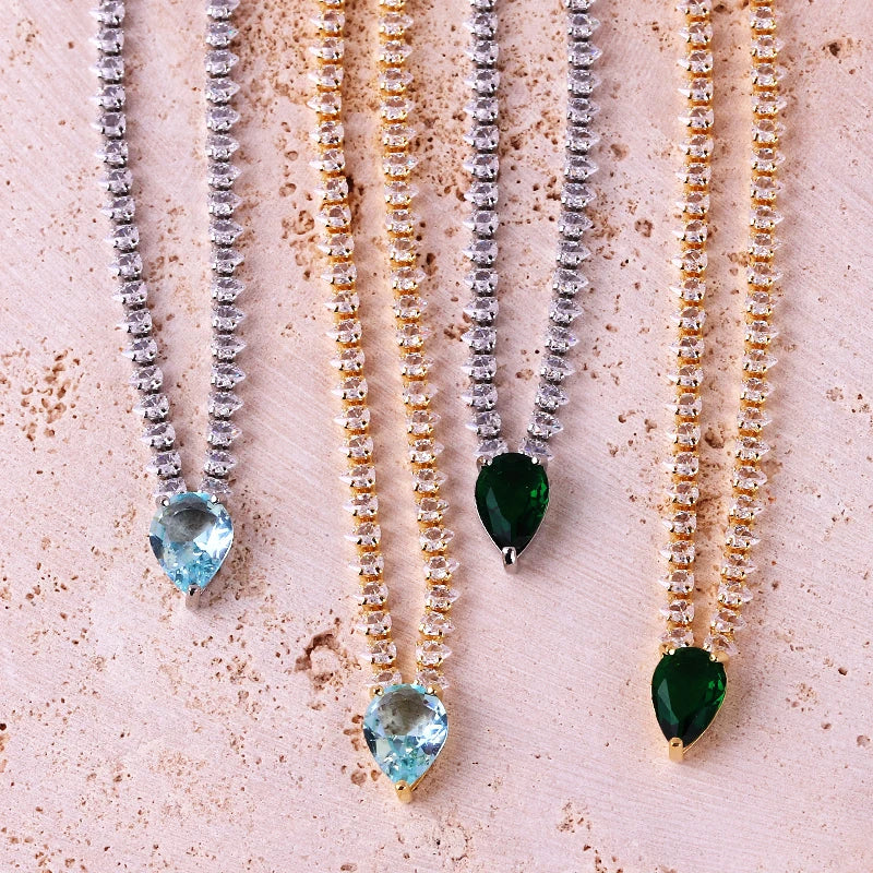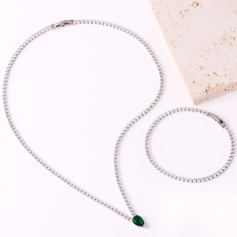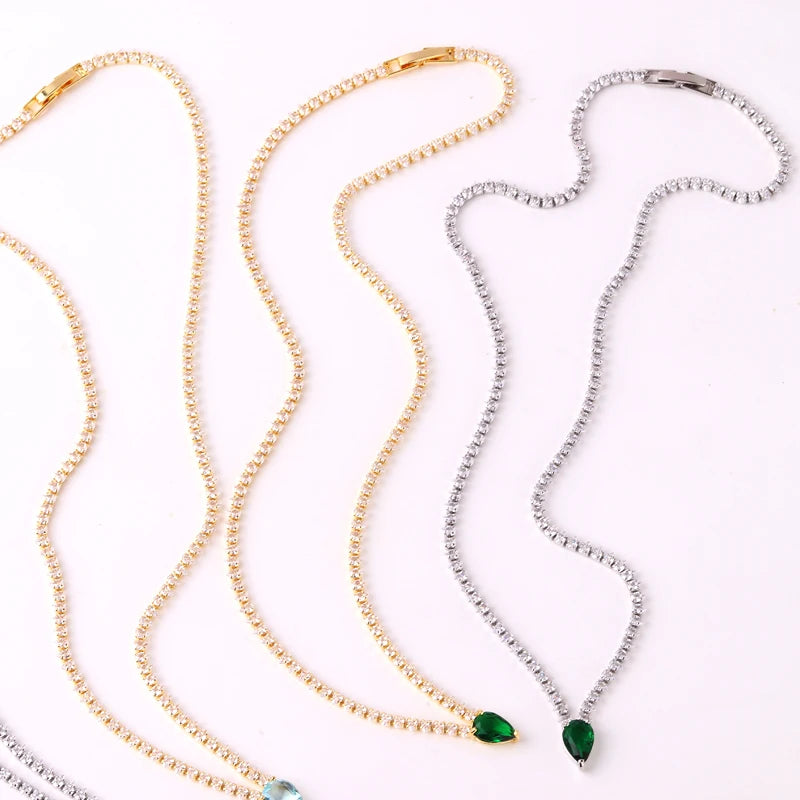 Type: Charm Copper Tennis Chain Green Zircon Necklaces & Pendants