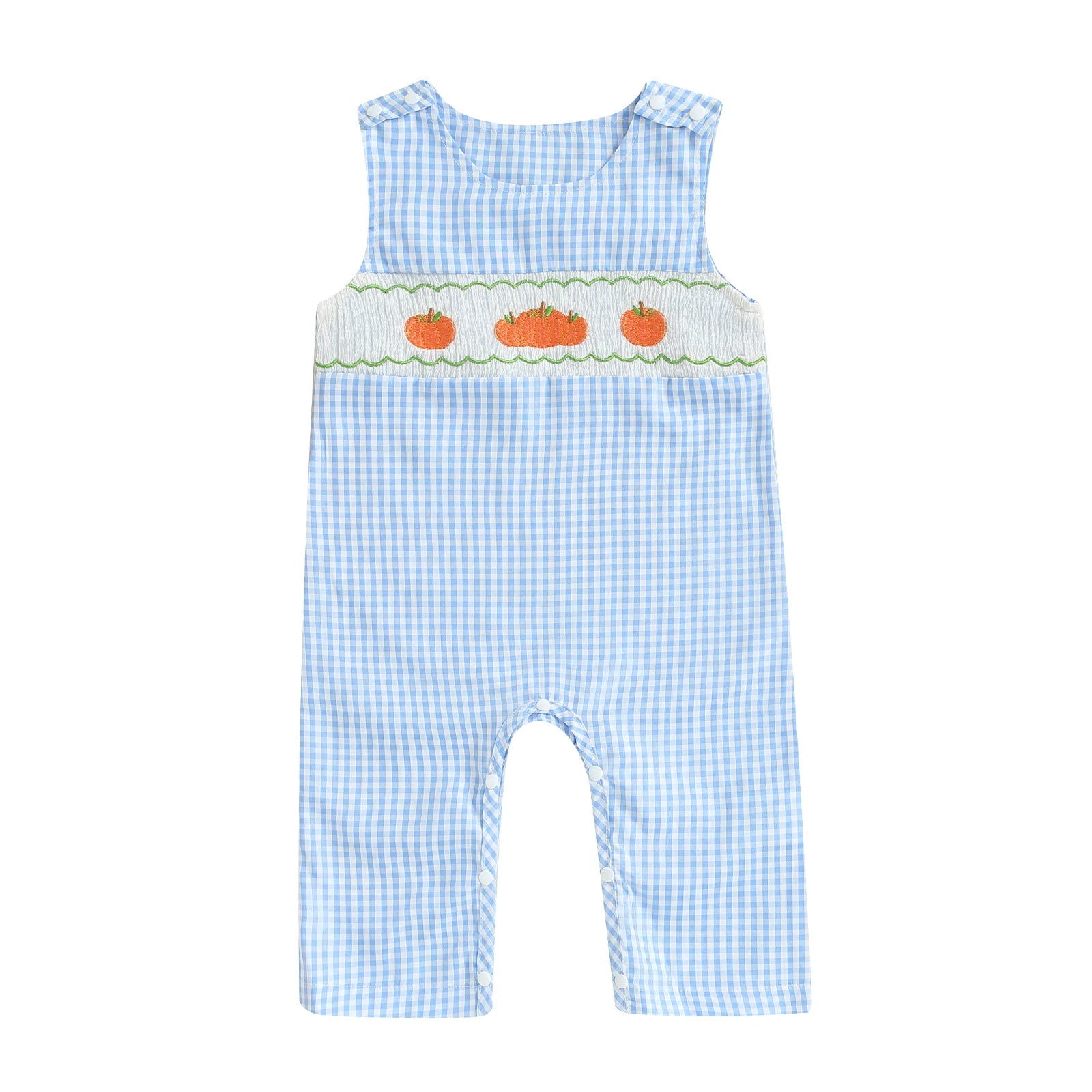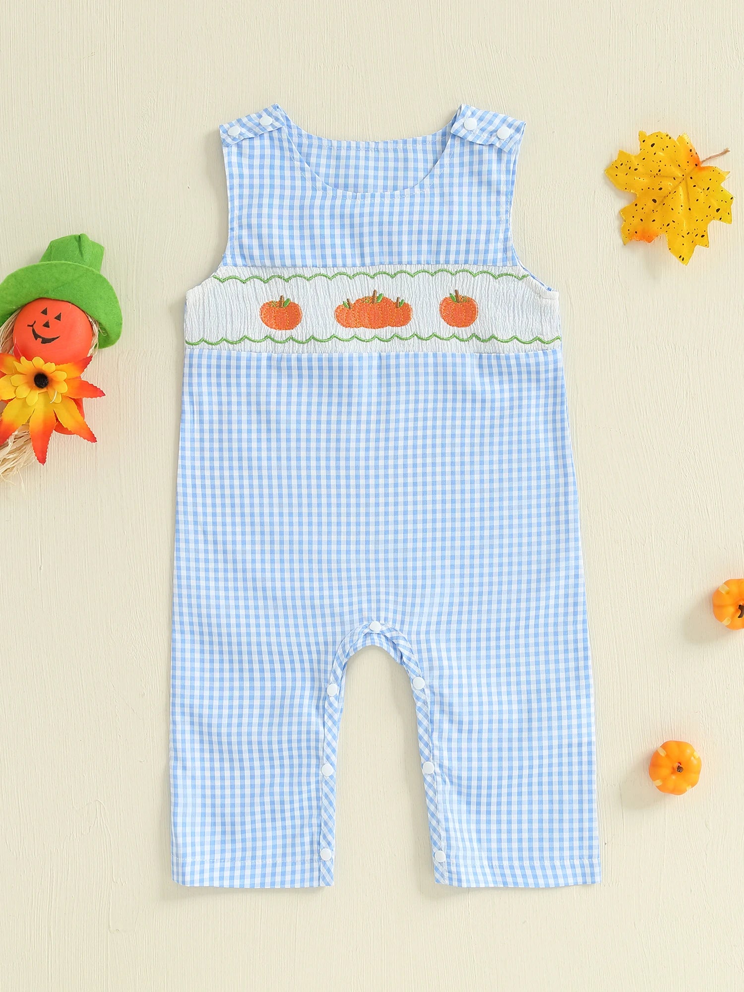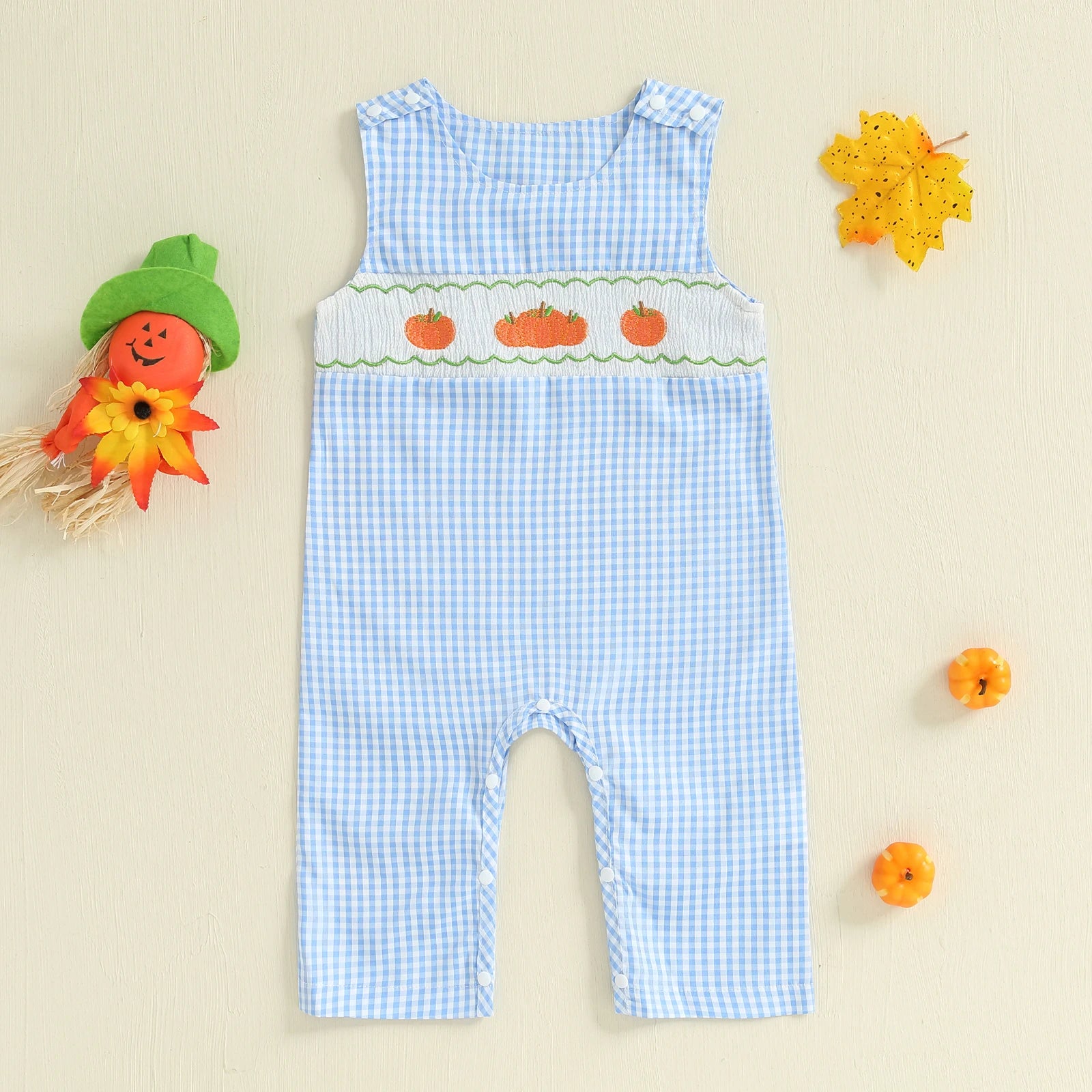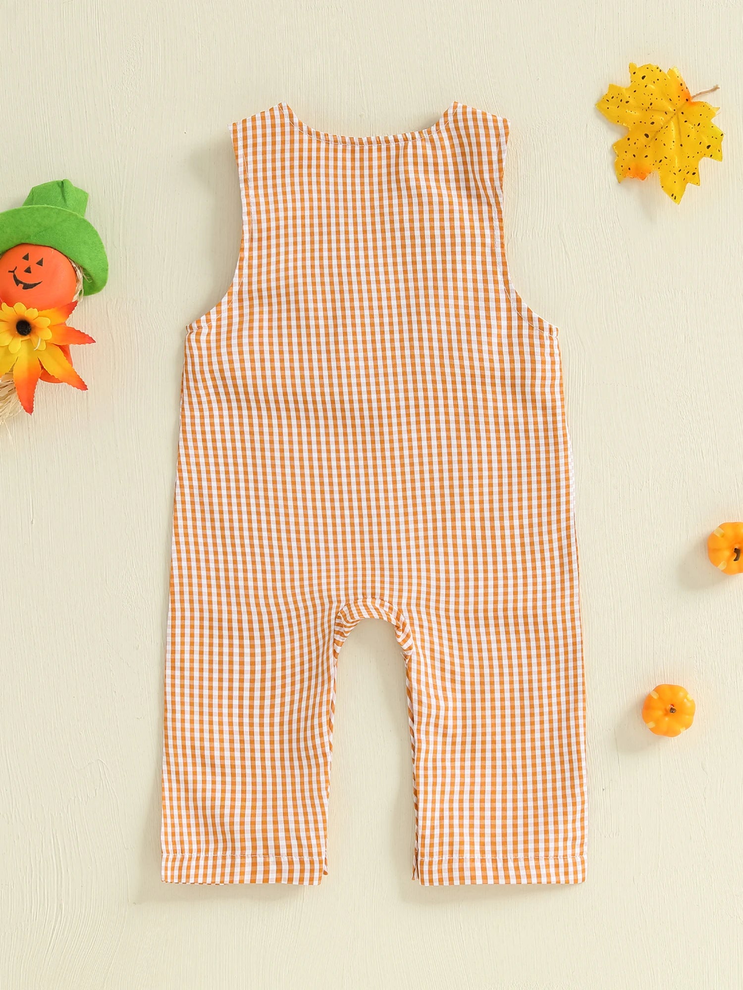Infant Halloween Costume Sleeveless Round Neck Pumpkin Embroidery Bodysuit Toddler Outfit for Fall Festivities