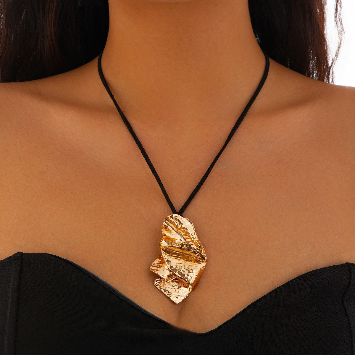 Ingemark Goth Black Korean Velvet Bow Chain Necklace for Women Punk Irregular Metal Pendant Choker Halloween Neck Jewelry Gift