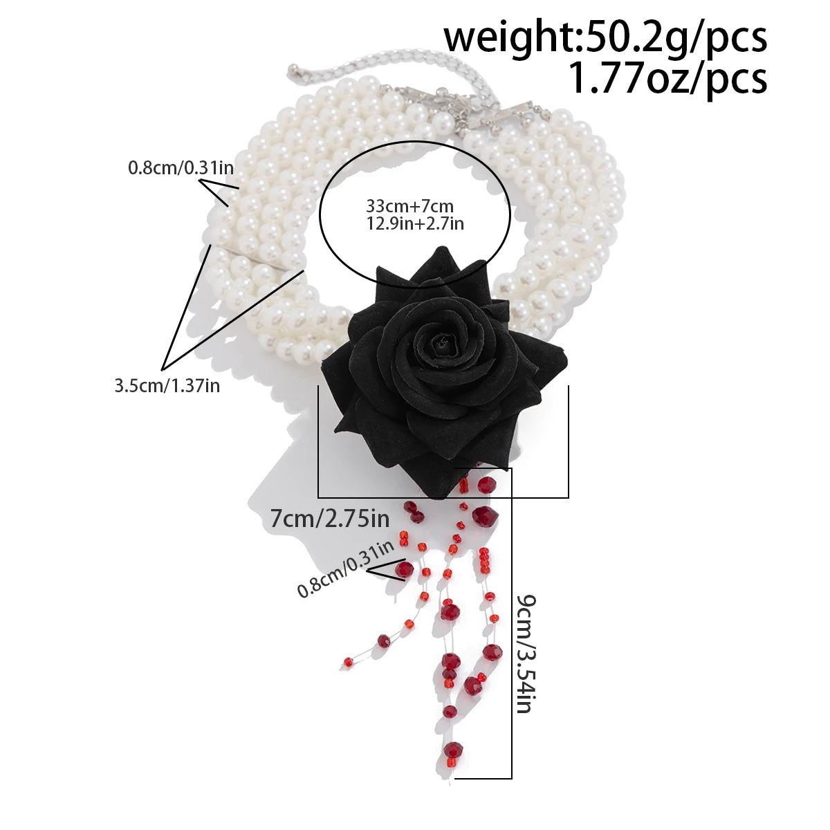 Ingemark Multilayer Imitation Pearl Rose Flower Clavicle Chain Necklace Women Goth Red Crystal Pendant Choker Halloween Jewelry