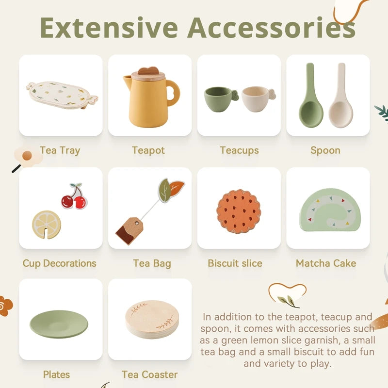 Kids Wooden Montessori Toys Afternoon Tea Set Pretend Play Kitchen Food Learning Role Play Game Baby Early Educational Toys Gift