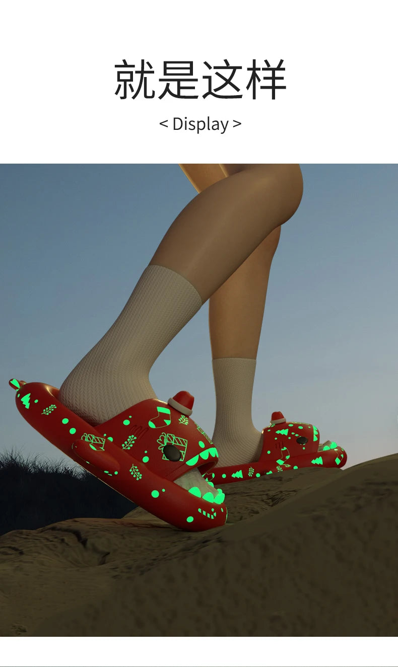 Luminous Shark Slippers Christmas Halloween Pumpkin DIY Shoes Woman Men Platform Sandals Anti Slip Couples Indoor Beach Slides