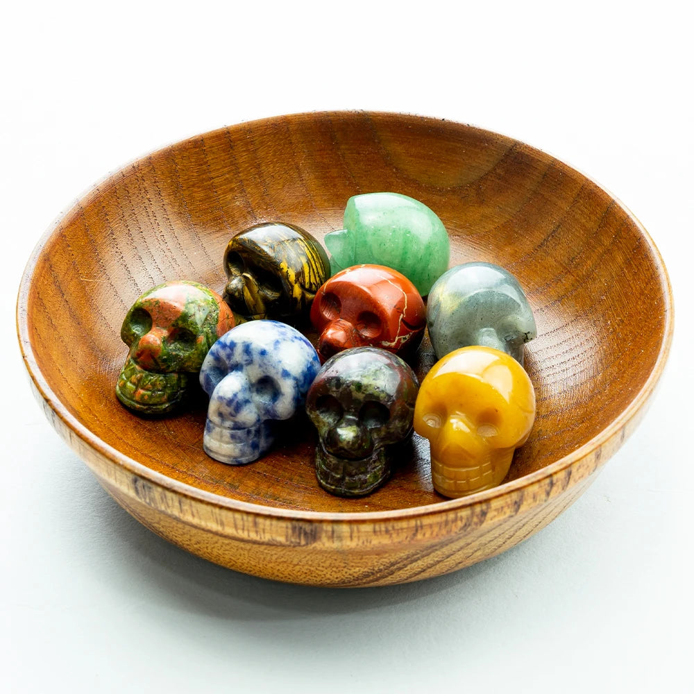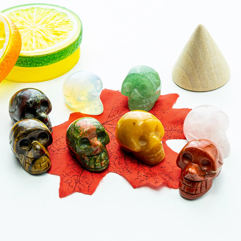 Natural Crystals Skulls Mineral Ghost Head Polished Carved Halloween Gift Desktop Home Decor Stone Crafts Skull Statues 14colors