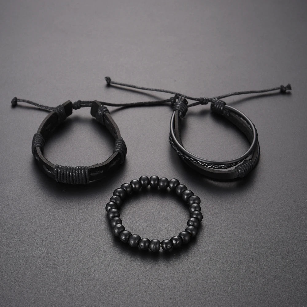 New Men's Watch Luxury Bracelet Multi Piece Set Fashion Business Black Leather Quartz Watch Men's Gift Set Reno Masculino