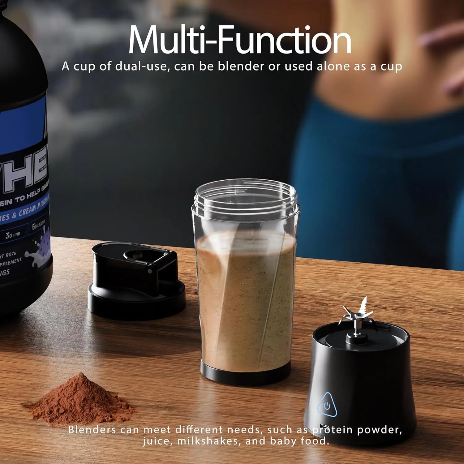Portable Blender Cordless Self-Cleaning Mini Blender with Lid Silent Mini Travel Blender with Stainless Steel Blades USB Charge