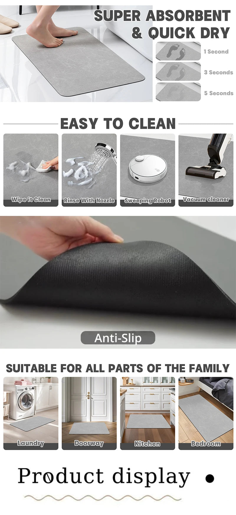 RAKKS Home Carpet Rug Diatom Mud Bath Mat Super Absorbent Bathroom Rug, Quick Dry Floor Mat for Wet Area, Easy Clean