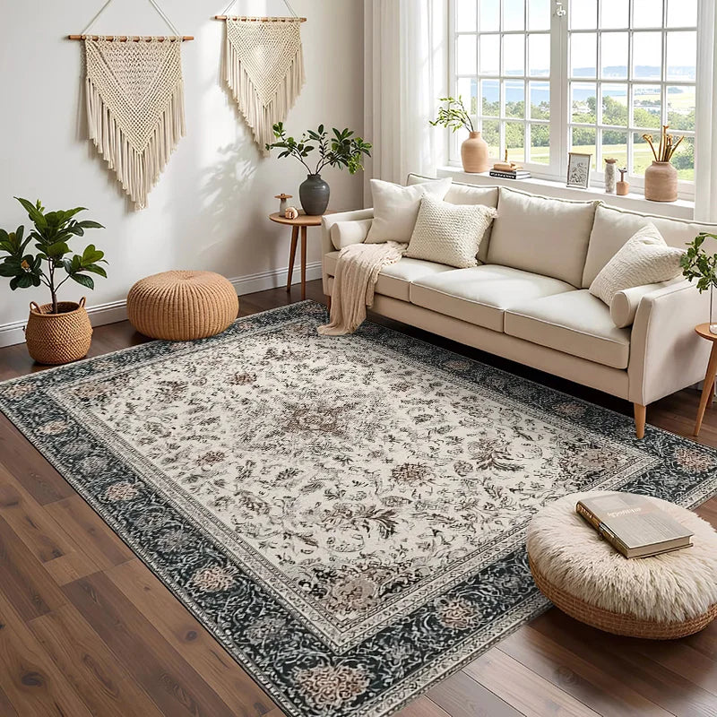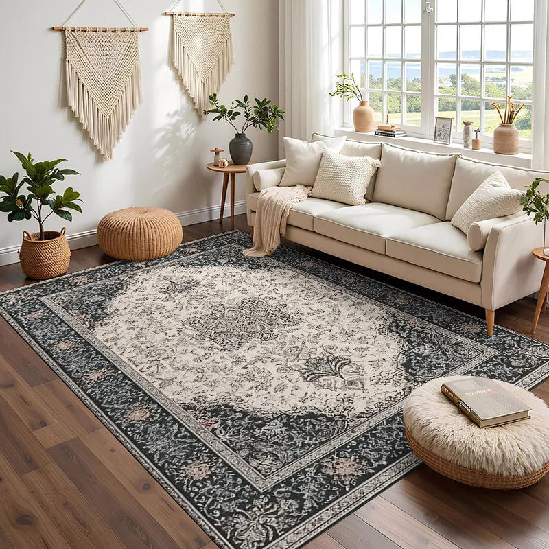 RAKKS Retro Style Rugs for Bedroom Large Area Living Room Decoration Anti-slip Carpet Washable Lounge Floor Mat Home Soft Rug