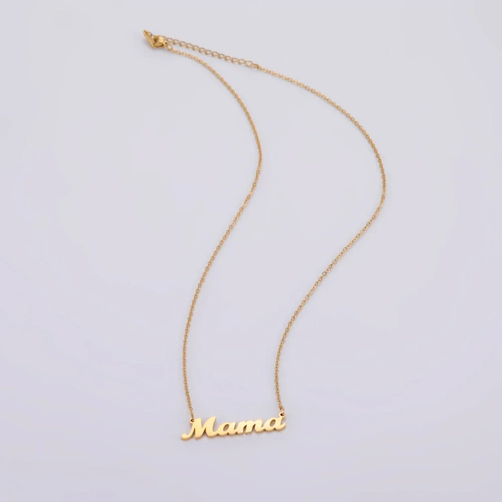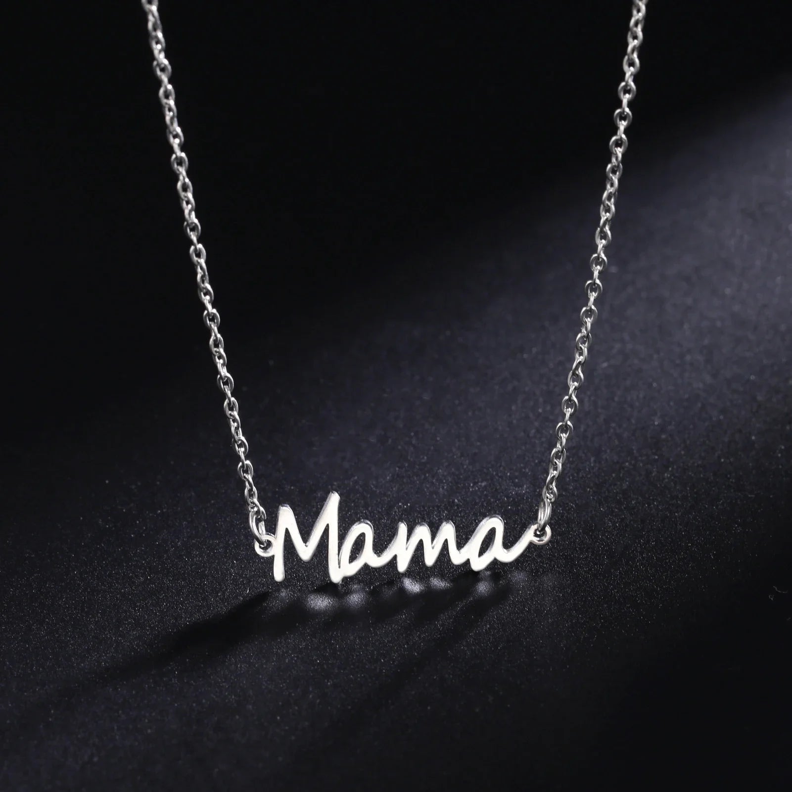 Skyrim Mama Letter Pendant Necklace for Women Stainless Steel Neck Chain Choker Trendy Family Jewelry Mother's Day Gift for Mom