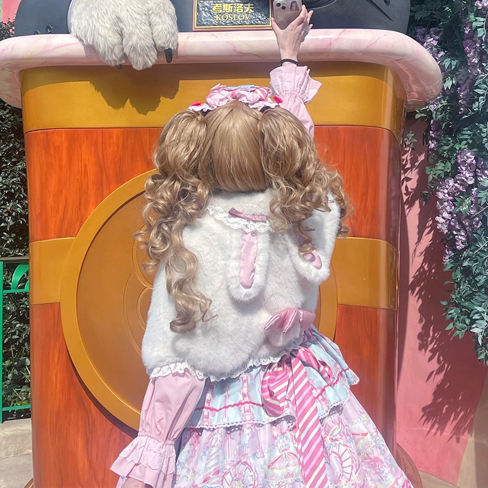 Synthetic Short Lolita Cosplay Christmas Halloween Bob Brown Blonde LM Wig With Long Curly Ponytail Natural Fake Hair for Women