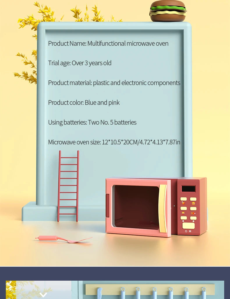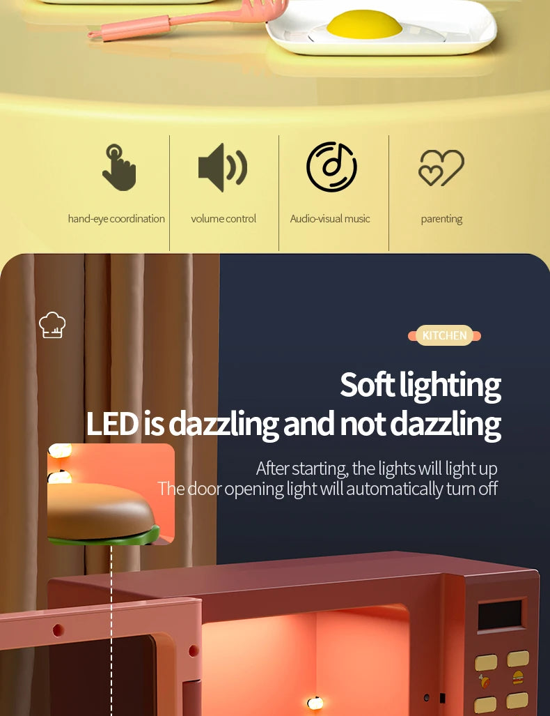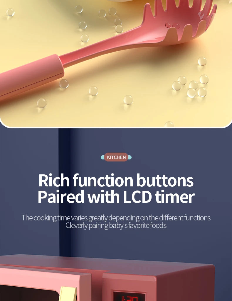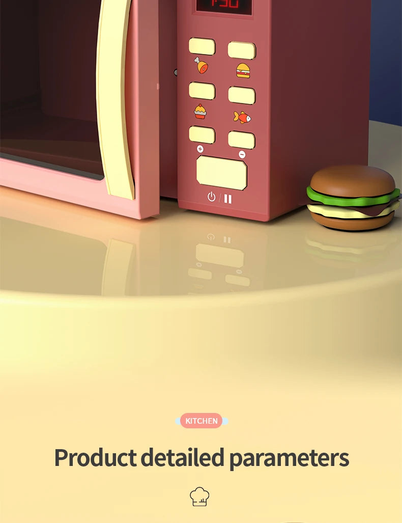 Toy Microwave Oven Playset with Light and Sound, Toy kitchen Appliances for Kids, Play kitchen accessories and Toy Food for Kids