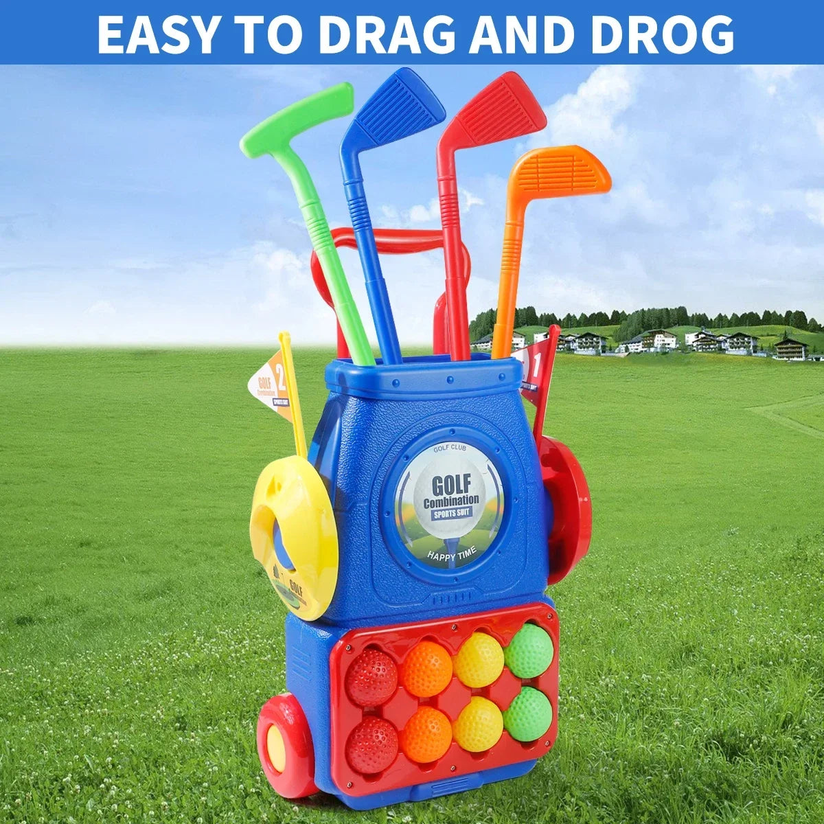 Upgraded Kids Golf Cart Toy with Golf Clubs,Balls,and Mat,Indoor&Outdoor Golf Toy,for Boy&Girls,Halloween/Christmas/Thanksgiving