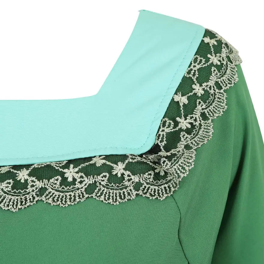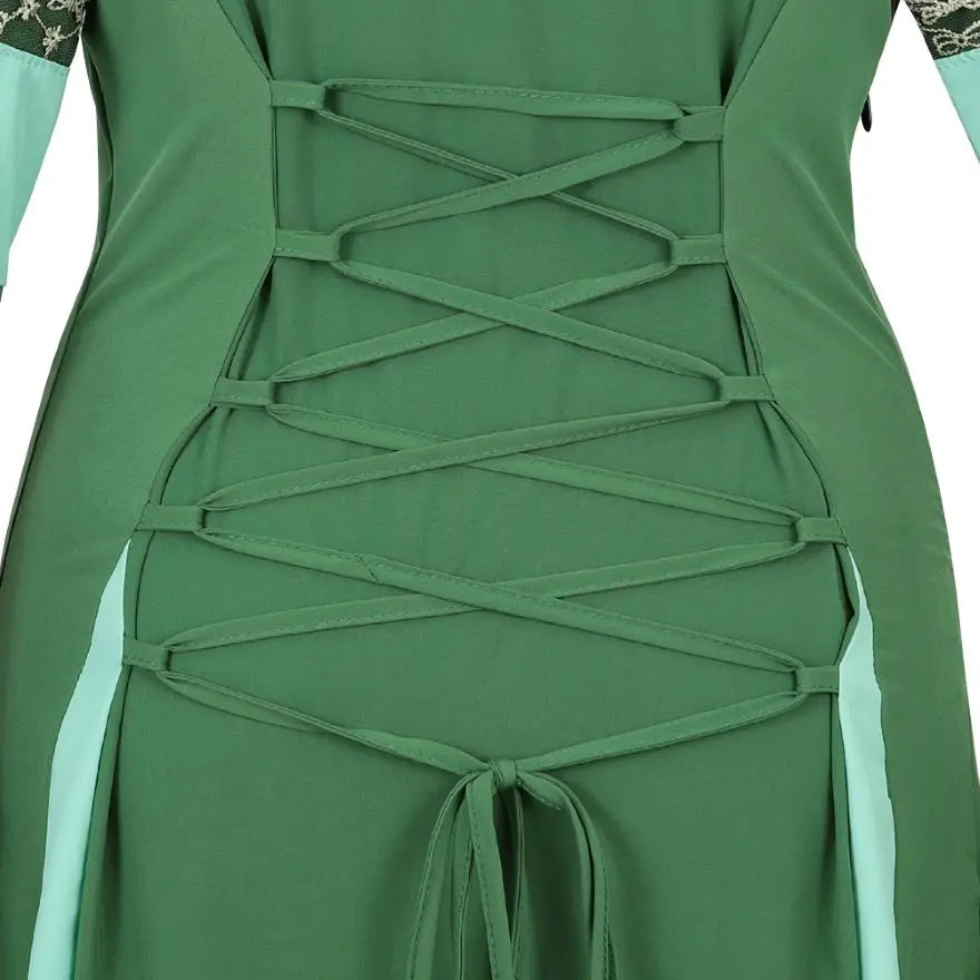 Women Medieval Renaissance Trumpet Sleeve Retro Loor Length Gown Lace Trim Irish Over Long Dress Halloween Costume Plus Size